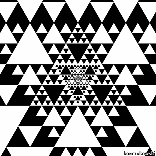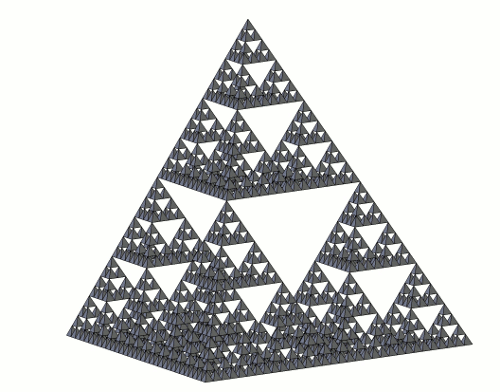 se encuentra esta que se muestra a continuación y que es una versión más compleja aún del triángulo fractal de Sierpinski “romano”.